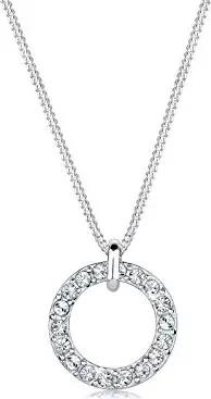 Halskette Damen Solitär Kreis Anhänger mit Kristallen in 925 Sterling Silber