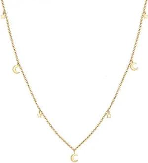 Halskette Damen Stern Mond Astro in 925 Sterling Silber vergoldet