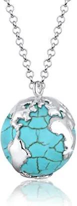 Halskette Silber 925 Globus Anhänger Kette Damen Howlith Schmuck Geschenke für Frauen Mädchen Mama Freundin, Talisman Silberkette Länge 70 cm