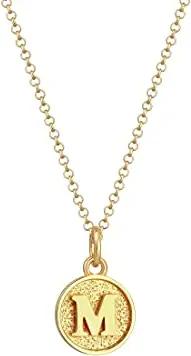 Halskette Silber 925 Vergoldet 24K Buchstabe M Anhänger Vintage Coin Münze Kette Damen Schmuck Geschenke für Frauen Mädchen Mama Freundin, Letter Silberkette Länge 45 cm