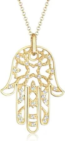 Halskette Damen Hamsa Hand Anhänger mit Kristallen in 925 Sterling Silber Vergoldet