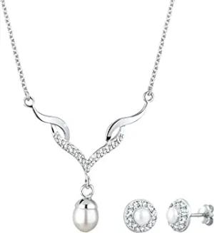 Schmuckset Damen Tropfen Anhänger Zeitlos mit Kristalle und Süßwasserperlen aus 925 Sterling Silber