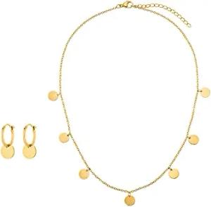 Heideman Geschenkset Halskette Kreise und Ohrcreole Circulli aus Edelstahl gold farbend poliert Kette und Ohrringe für Frauen vergoldet