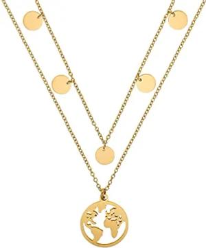 Heideman Halskette Damen Weltkugel mit 5 Plättchen aus Edelstahl gold farbend poliert Kette für Frauen vergoldet