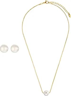 Heideman Set Fabien Halskette und Ohrstecker aus Edelstahl gold farbend poliert Kette und Ohrringe für Frauen mit Perle weiss vergoldet