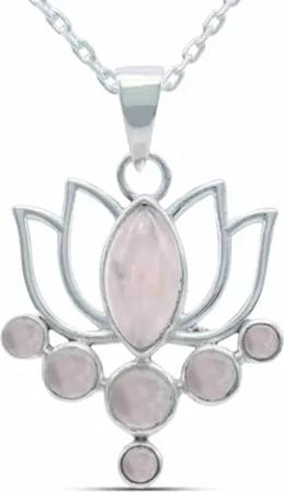 echt Silberkette mit Rosenquarz Edelstein Damen Kettenanhänger 925 Sterlingsilber Halskette Geschenk (AK1-138-07-45)
