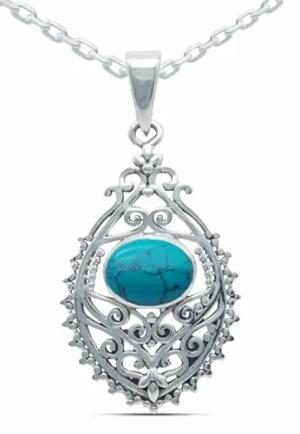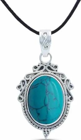 Kettenanhänger 925 Silber Türkis Edelstein Kettenanhänger Damen Sterling Silber Halskette Anhänger Geschenk (MAH-159-15)
