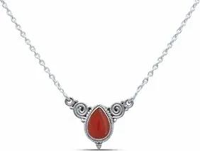 echt Silberkette mit Karneol orange roter Edelstein Damen Kettenanhänger 925 Sterlingsilber Halskette Geschenk (AK1-172-16-40)