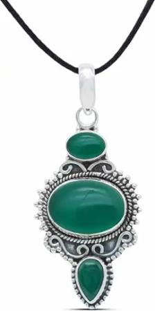 Kettenanhänger 925 Silber grüner Onyx Stein Edelstein Kettenanhänger Damen Sterling Silber Halskette Anhänger Geschenk (MAH-076-14)