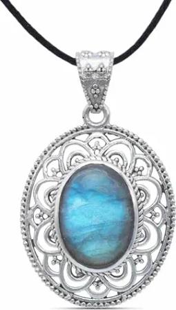 Kettenanhänger 925 Silber Labradorit grün blauer Stein Edelstein Kettenanhänger Damen Sterling Silber Halskette Anhänger Geschenk (MAH-159-05)