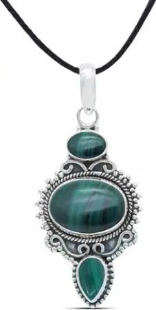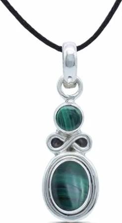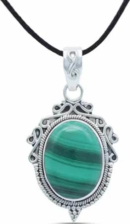 Kettenanhänger 925 Silber Malachit grüner gestreifter Stein Edelstein Kettenanhänger Damen Sterling Silber Halskette Anhänger Geschenk (MAH-115-10)