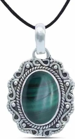 Kettenanhänger 925 Silber Malachit grüner gestreifter Stein Edelstein Kettenanhänger Damen Sterling Silber Halskette Anhänger Geschenk (MAH-124-10)
