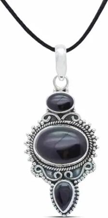 Kettenanhänger 925 Silber Onyx schwarzer Stein Edelstein Kettenanhänger Damen Sterling Silber Halskette Anhänger Geschenk (MAH-159-03)