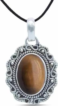 Kettenanhänger 925 Silber Tigerauge brauner Stein Edelstein Kettenanhänger Damen Sterling Silber Halskette Anhänger Geschenk (MAH-131-18)