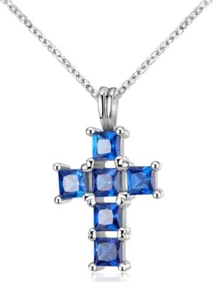 Materia Anhänger Kreuz blau Zirkonia- Silber 925 mit Kette Damen Mädchen KA-238-K97-45cm