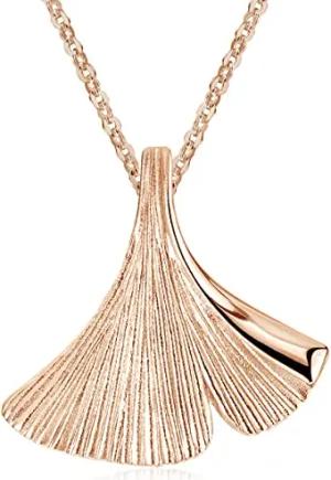 Materia Ginkgo Blatt Anhänger Rosegold - 925 Sterling Silber Damen Schmuck vergoldet KA-12-R_K53-60cm