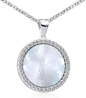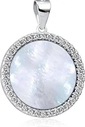 MATERIA Perlmutt Anhänger rund weiß - Kettenanhänger Silber 925 Damen Zirkonia Muschel in Box KA-456-W_ohne Kette