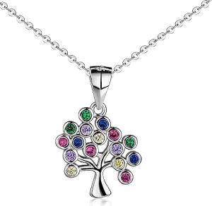 Materia Lebensbaum Kette Silber 925 Damen verstellbar KA-518-Bunt-K142