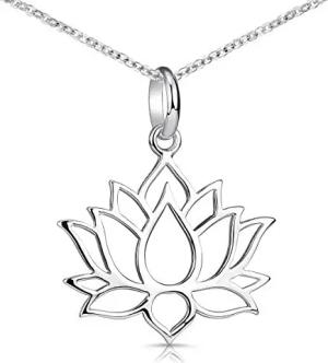 Materia Lotusblüte Kette Silber 925 - Lotus Schmuck Lotusblume Halskette Damen Teenager KA-69-Silber_K30-40cm