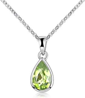 MATERIA Peridot Kette Echtschmuck - 925 Silber Kettenanhänger Tropfen-Form grün KA-274-G_K97-45 cm
