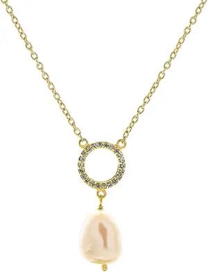925 Silver Necklace Gold Plated with Freshwater Pearl and Circle with Zirconium