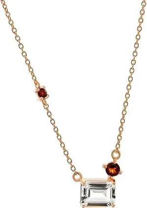 925 Silver Necklace Rose Gold Plated with Octagon Shaped White Topaz and Garnet