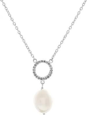 925 Silver Necklace with Freshwater Pearl and Circle with Zirconium