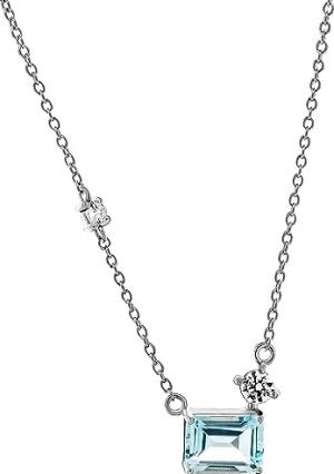 925 Silver Necklace with Octagon Shaped Sky Blue Topaz and Zirconium
