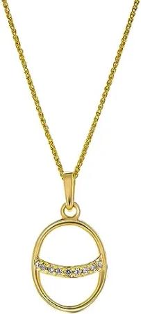 925 Silver Pendant with Chain Gold Plated Oval with Bar with Zirconium