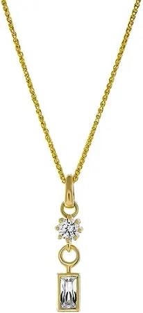925 Silver Pendant with Chain Gold Plated with Round and Baguette Zirconium