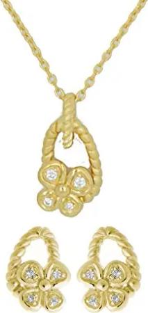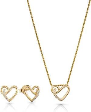 925 Silver Set Necklace + Earrings Gold Plated Heart with Zirconium Pavé
