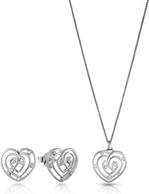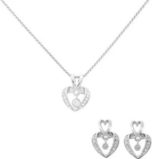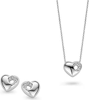 925 Silver Set Earrings + Pendant with Chain Heart with Zirconium