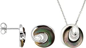 925 Silver Set Earrings + Pendant with Chain Round with Mother of Pearl and Zirconium