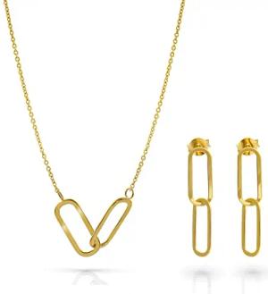 925 Silver Set Necklace + Earrings Gold Plated Links