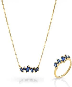 925 Silver Set Necklace + Ring Gold Plated with Sapphire Zirconium Size 56
