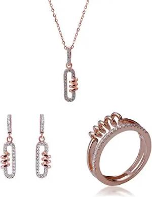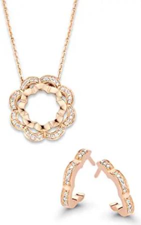 925 Silver Set Pendant with Chain + Earrings with Zirconium