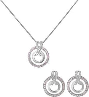 925 Silver Set Pendant with Chain + Earrings Round with Pink Zirconium