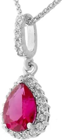 Damen-Anhänger met Kette 925 Silber rhodiniert Zirkonia rot Brillantschliff-ZH-7226/RU