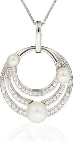 925 Silver Necklace with Freshwater Pearl and Zirconium