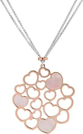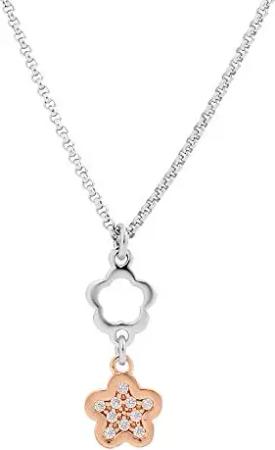 925 Silver Pendant with Chain Rose Gold Plated Flower with White Mother of Pearl and Zirconium