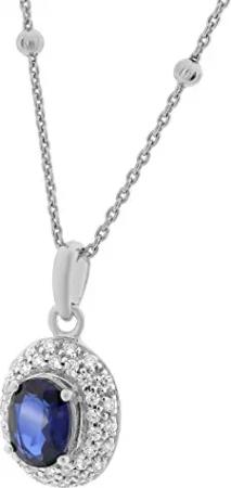 925 Silver Pendant with Chain Stadium Shape with Blue Zirconium