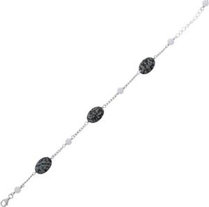 Jewelry Damen-Armband Schwarze Glaszylinders 925 Sterling Silber ZA-1730
