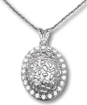 ZH-4520 925 Silver Pendant with Chain Oval with Zirconium