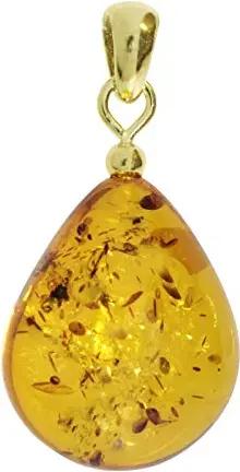 Anhänger - Tropfen ca. 20 mm lang - Silber 925/000 vergoldet - Bernstein -,