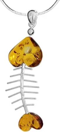 Kette mit Anhänger - Fisch 60 mm - Silber 925/000 - Bernstein