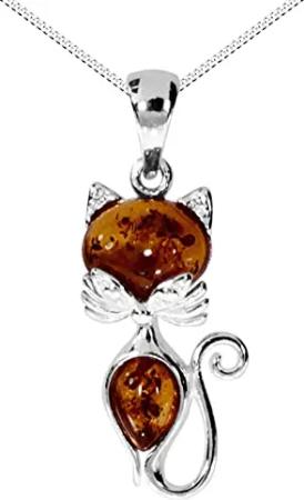Kette mit Anhänger - Katze - Silber 925/000 - Bernstein