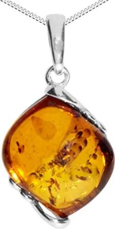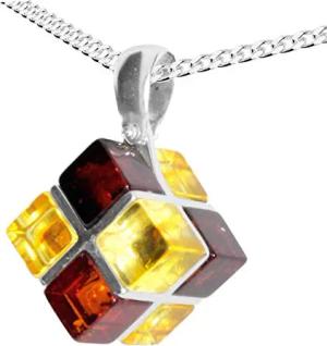 Kette mit Anhänger - Würfel 11 mm - Silber 925/000 - Bernstein