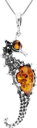 Kette mit Anhänger - Seepferd - Silber 925/000 - Bernstein