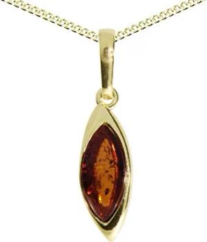 Kette mit Anhänger - Tropfen flach, ca. 17 mm lang - Silber 925/000, vergoldet - Bernstein