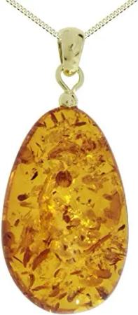 Kette mit Anhänger - Tropfen ca. 42 mm lang - Silber 925/000, vergoldet - Bernstein